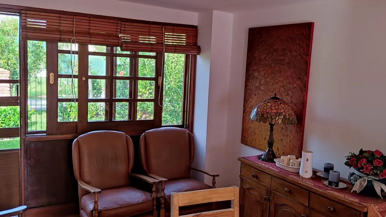 La casa principal cuenta con 2 dormitorios amplios, living con estufa a leña, baño completo y cocina, destacándose los placares empotrados en madera de cedro y aire acondicionado en todos los ambientes. Además, dispone de barbacoa interna integrada al living. El apartamento independiente ofrece 1 dormitorio, baño y barbacoa propia, ideal para renta o visitas.
