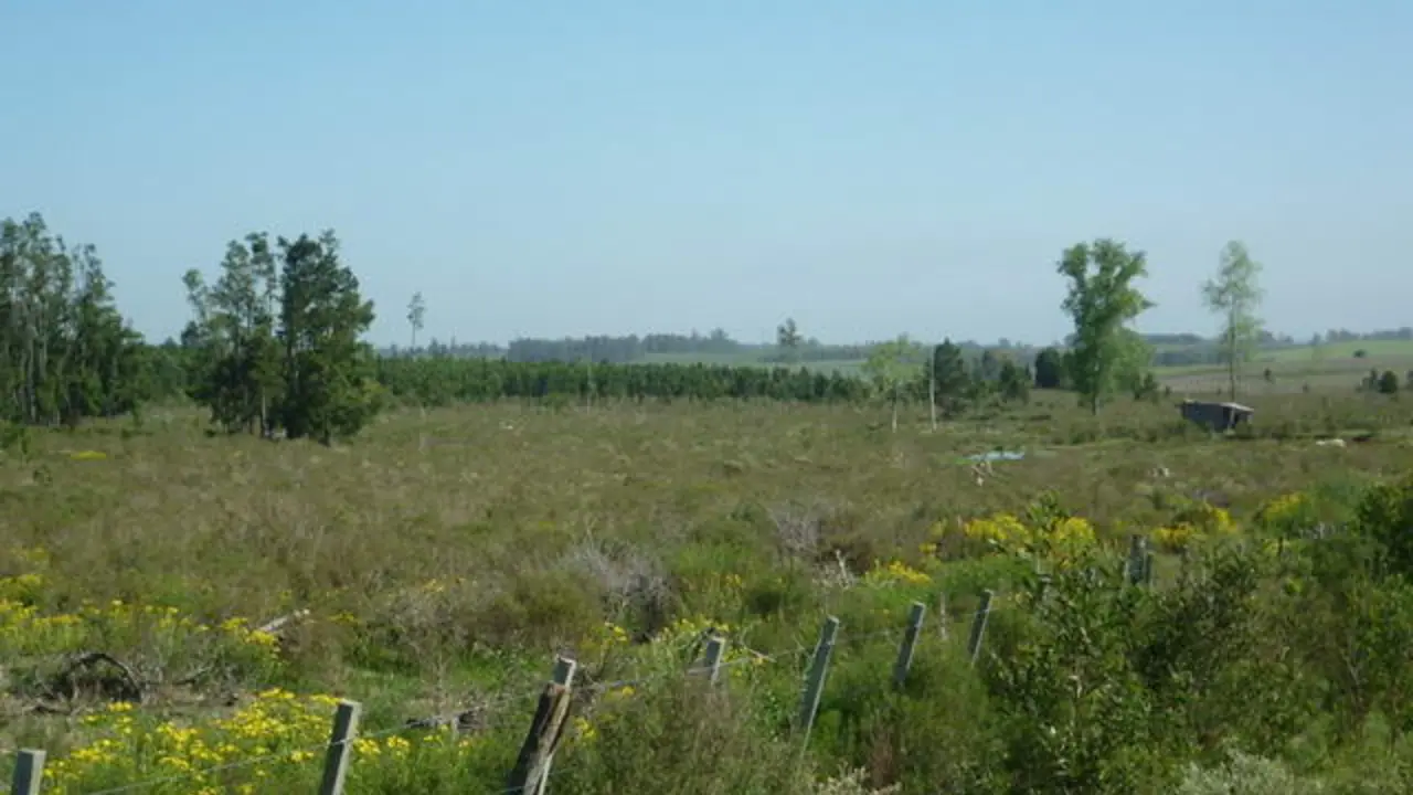 Campo en ruta 8 hacia Minas, donde la mitad del mismo esta forestado con pino eliotis de 9 años, podado y entresacado. Posee dos tajamares y está totalmente alambrado.
